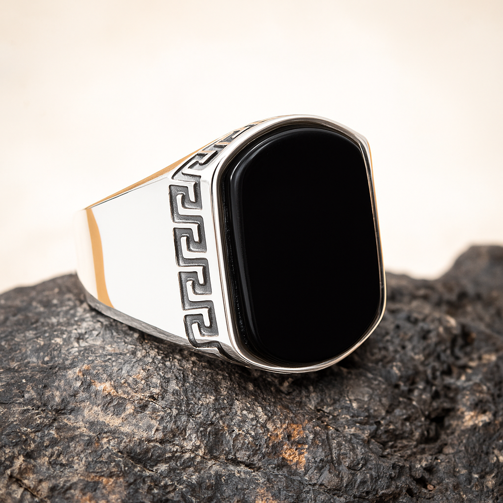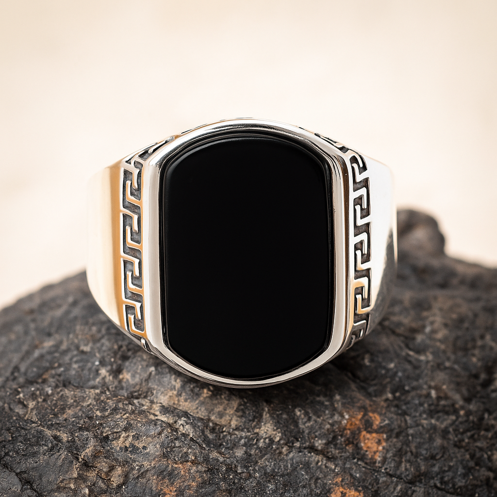 Its clean contours, minimal metalwork, and rich green hue make this ring a distinctive accessory for the man who values elegance without excess. The design feels both grounded and ethereal β perfect for those who lean toward artful simplicity and sophisticated statement pieces.